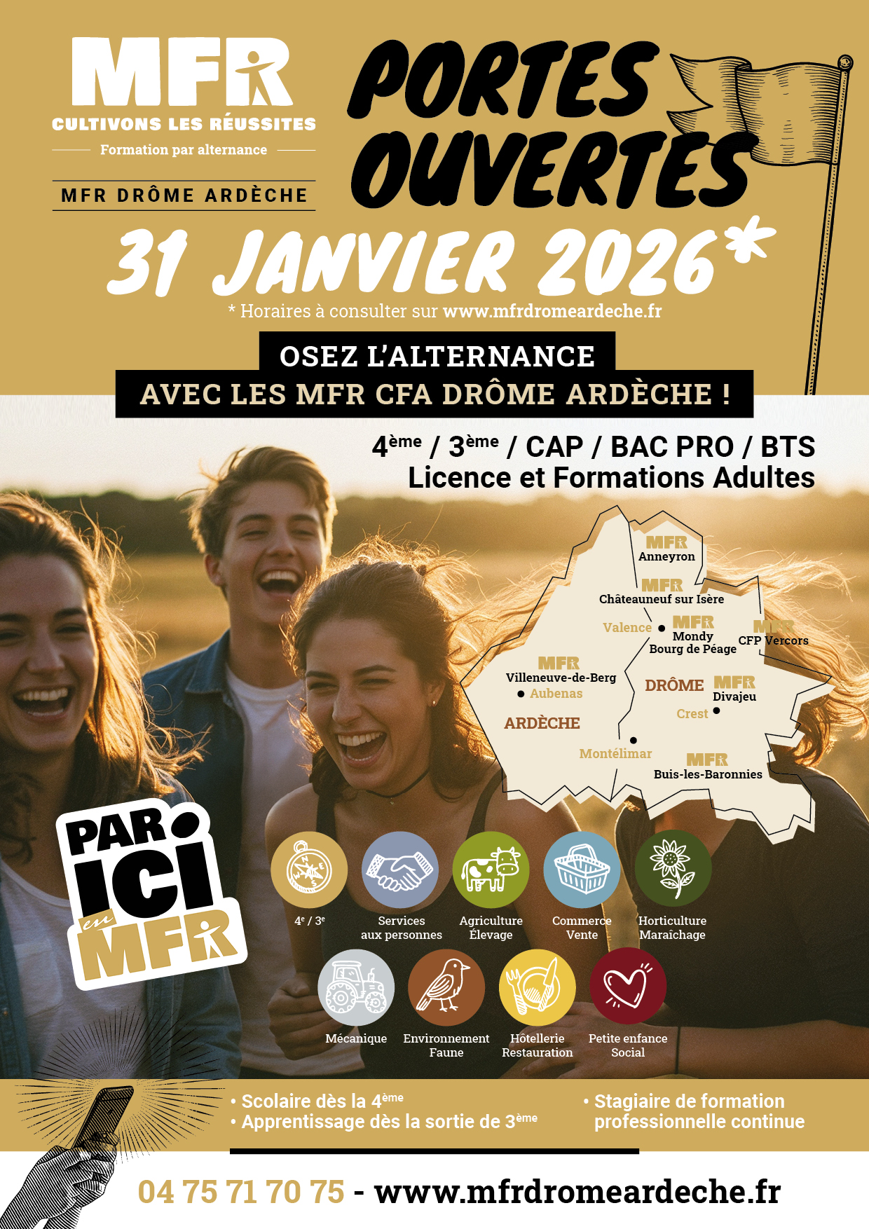 Les MFR de Drôme Ardèche accueillent les jeunes dès 14 ans pour leur proposer un accompagnement vers la formation la plus adaptée à leur projet .